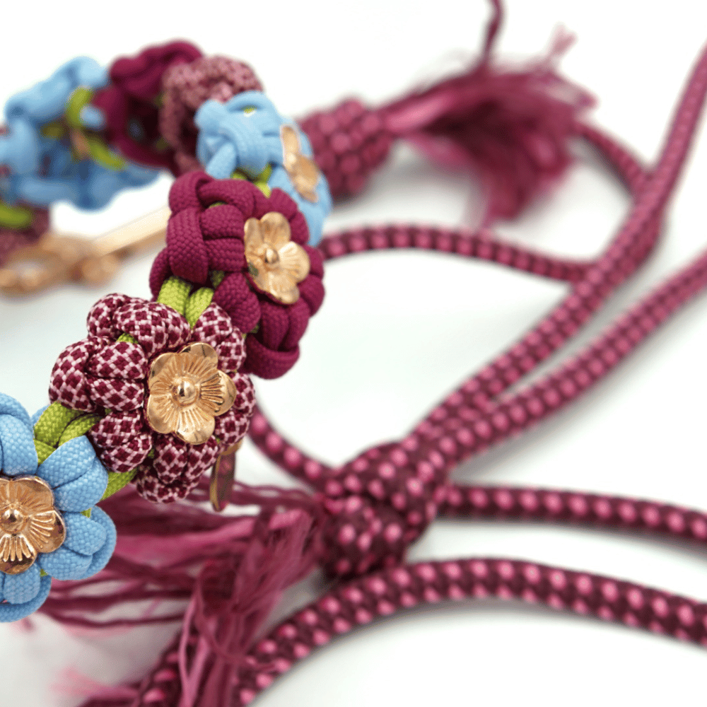 Kwiatowy splot został wykonany z linki Paracord 550, która dzięki swojej wytrzymałości znajduje zastosowanie, m.in. w akcesoriach survivalowych. Wybierając nasze obroże możesz mieć pewność, że utrzymają największego psiego siłacza.