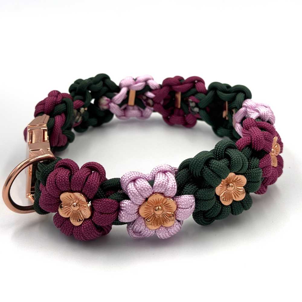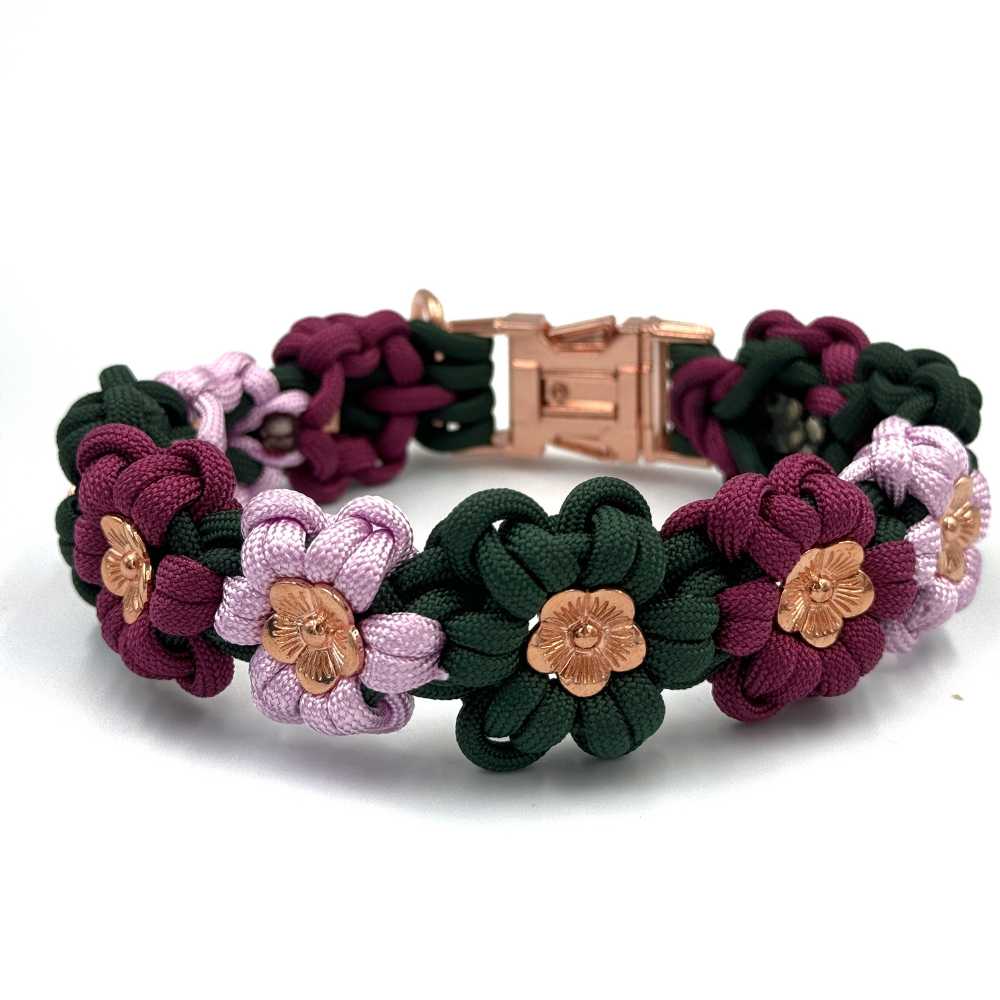 Kwiatowy splot został wykonany z linki Paracord 550, która dzięki swojej wytrzymałości znajduje zastosowanie, m.in. w akcesoriach survivalowych. Wybierając nasze obroże możesz mieć pewność, że utrzymają największego psiego siłacza.