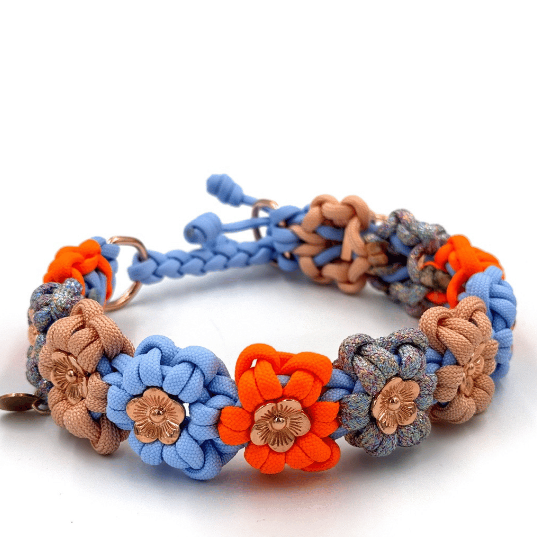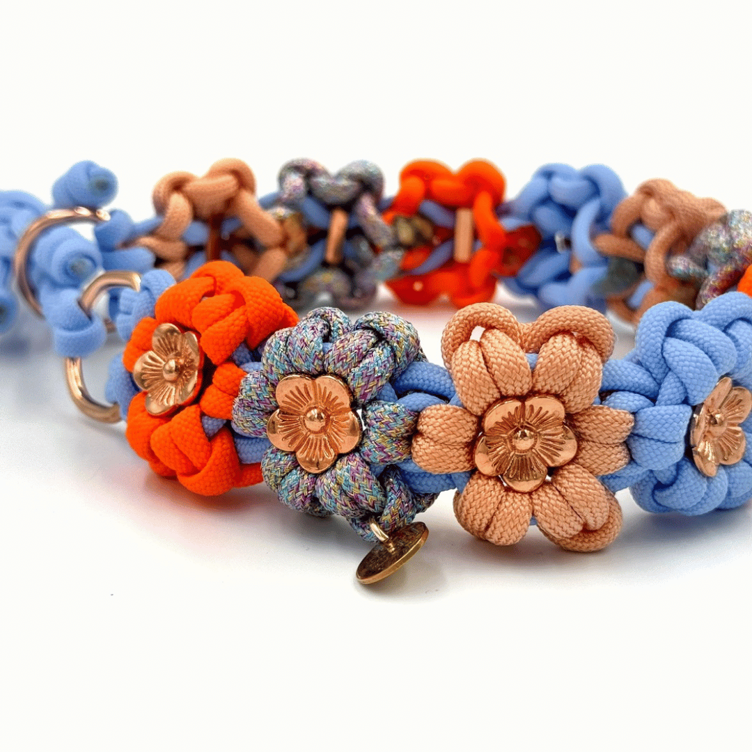 Kwiatowy splot został wykonany z linki Paracord 550, która dzięki swojej wytrzymałości znajduje zastosowanie, m.in. w akcesoriach survivalowych. Wybierając nasze obroże możesz mieć pewność, że utrzymają największego psiego siłacza.