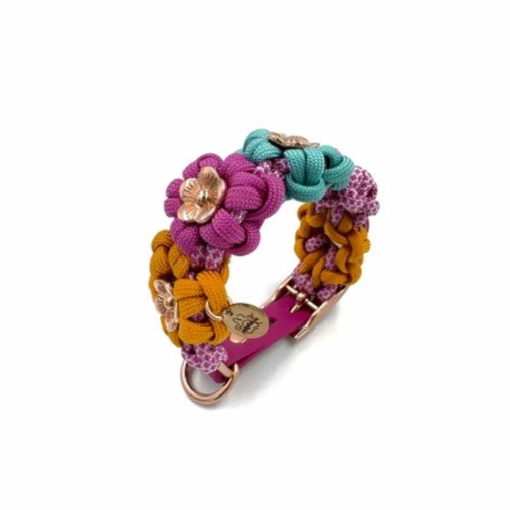Kwiatowy splot został wykonany z linki Paracord 550, która dzięki swojej wytrzymałości znajduje zastosowanie, m.in. w akcesoriach survivalowych. Wybierając nasze obroże możesz mieć pewność, że utrzymają największego psiego siłacza.