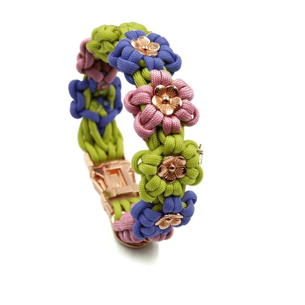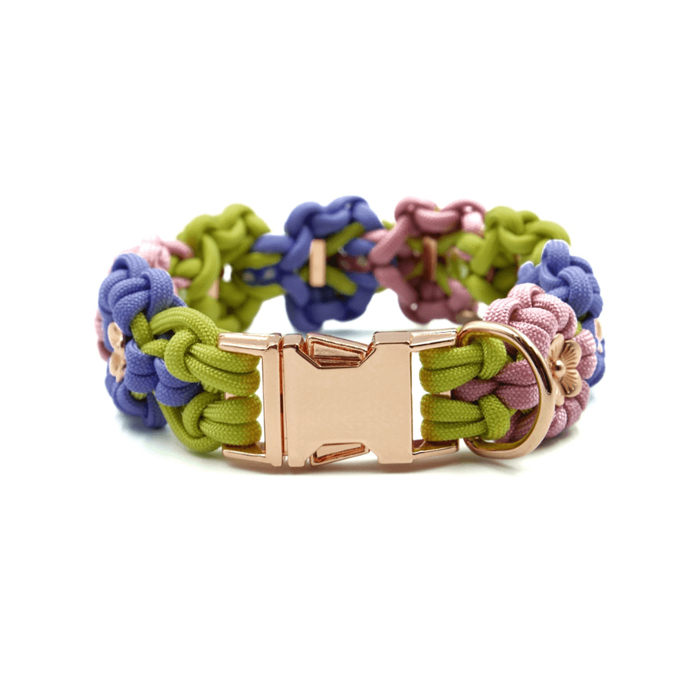 Kwiatowy splot został wykonany z linki Paracord 550, która dzięki swojej wytrzymałości znajduje zastosowanie, m.in. w akcesoriach survivalowych. Wybierając nasze obroże możesz mieć pewność, że utrzymają największego psiego siłacza.