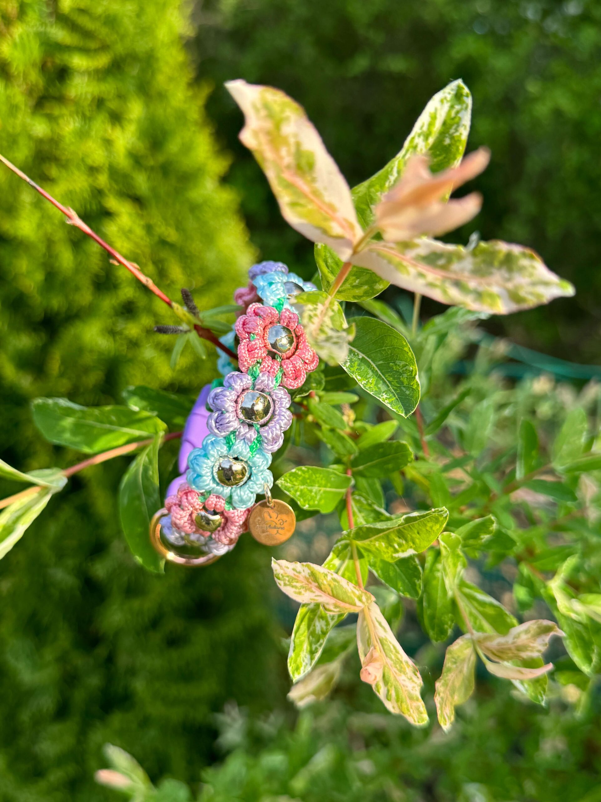 Kwiatowy splot został wykonany z cieńszej wersji linki Paracord, aby zapewnić psim mikrusom komfort i wygodę podczas noszenia.