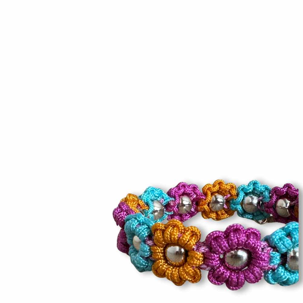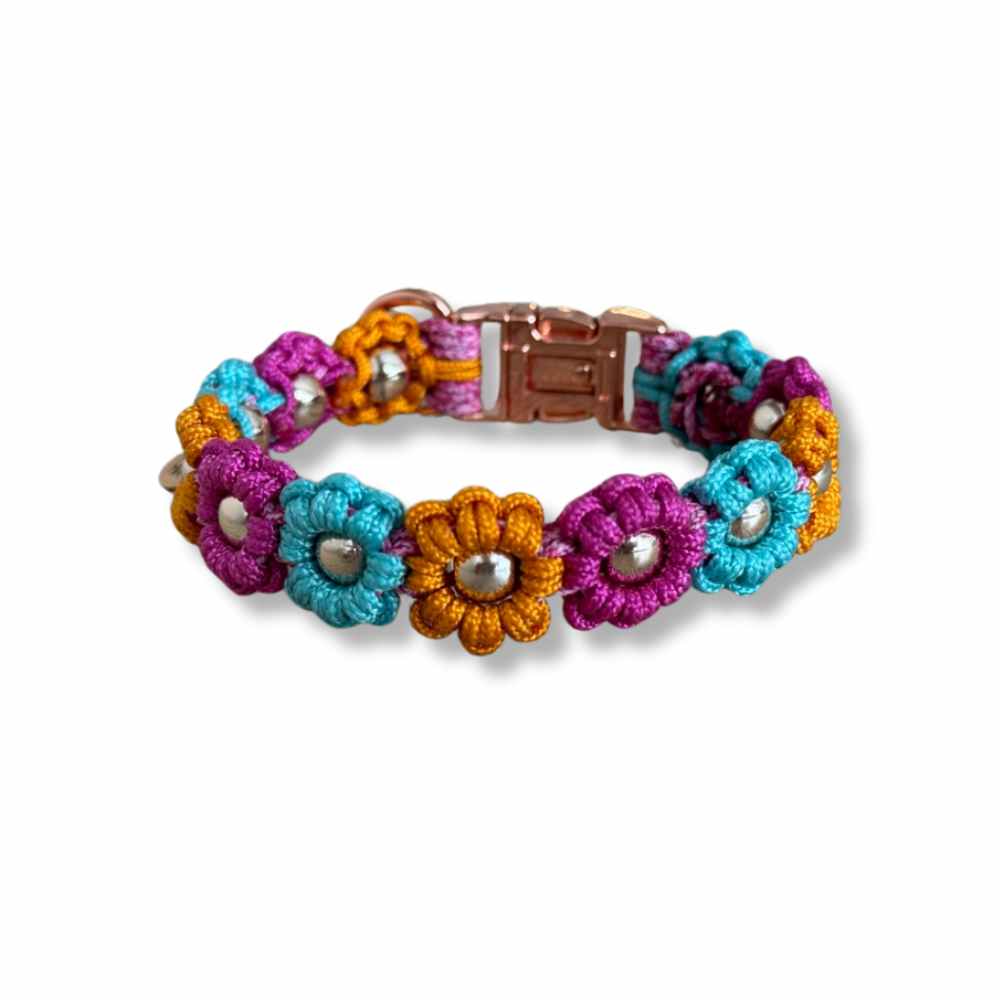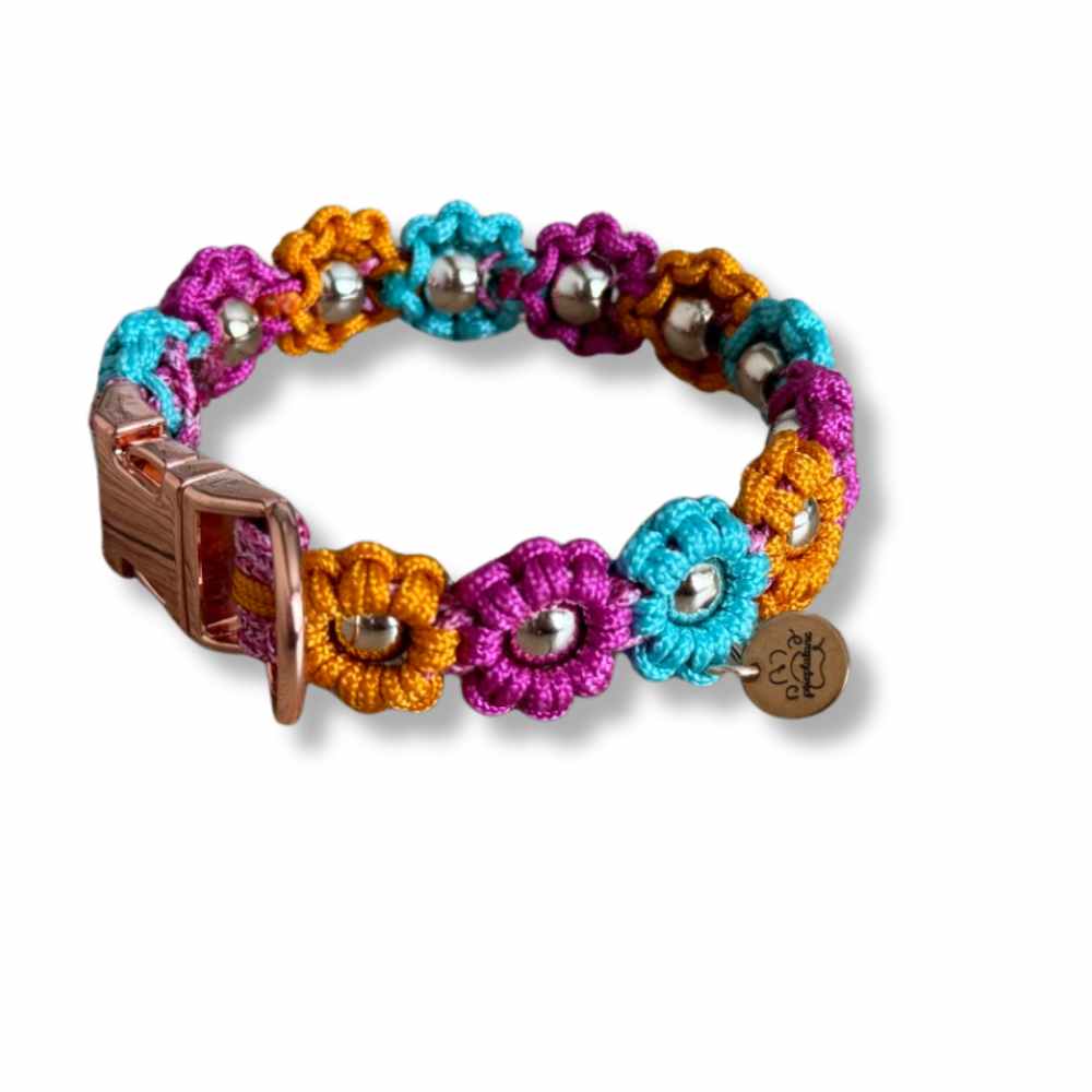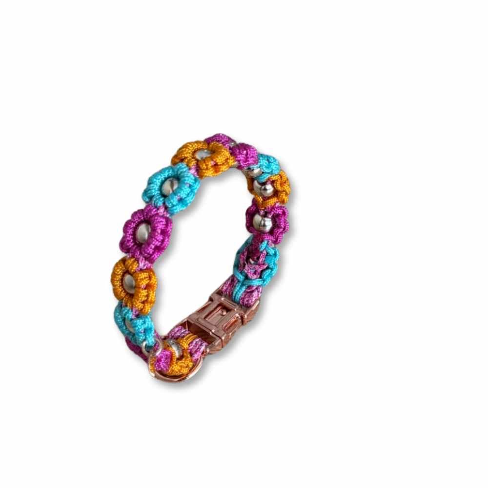 Kwiatowy splot został wykonany z cieńszej wersji linki Paracord, aby zapewnić psim mikrusom komfort i wygodę podczas noszenia.