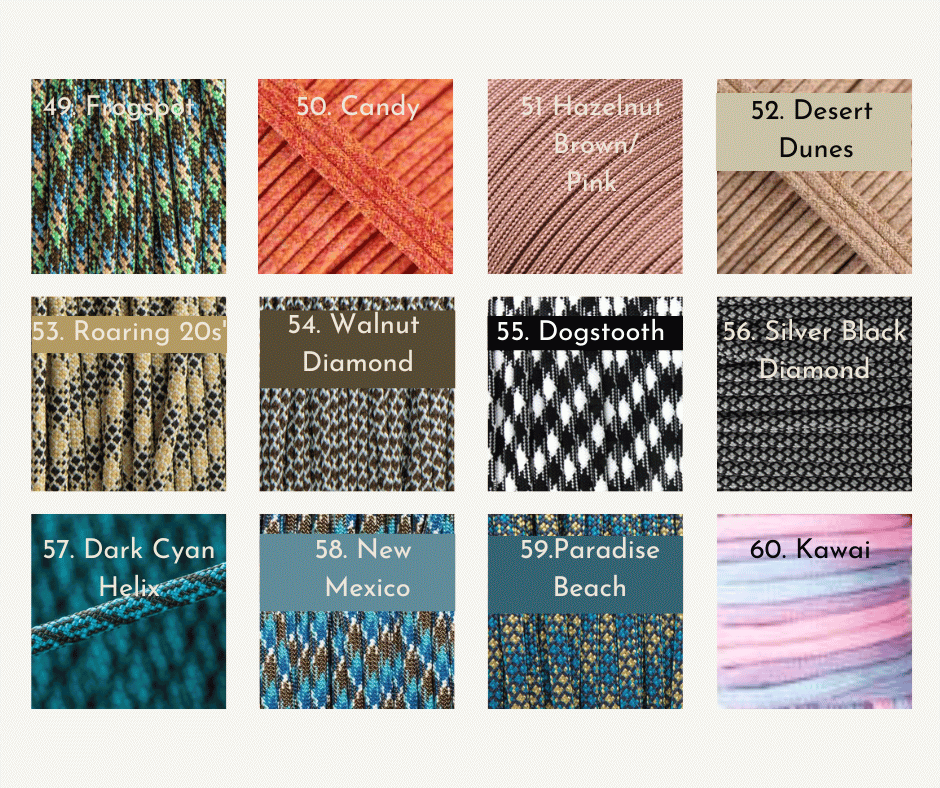 Krok 3. Pleciony pasek na grzbiecie możemy wykonać w różnych kolorach, wybierz 1,2 lub 3 kolory z wzornika kolorów Paracord i podaj numer/y lub nazwy w wyznaczonym polu. Dodatkowo podaj kolor krawędzi splotu.