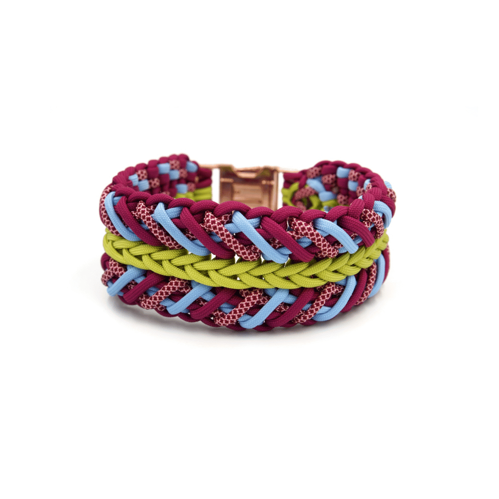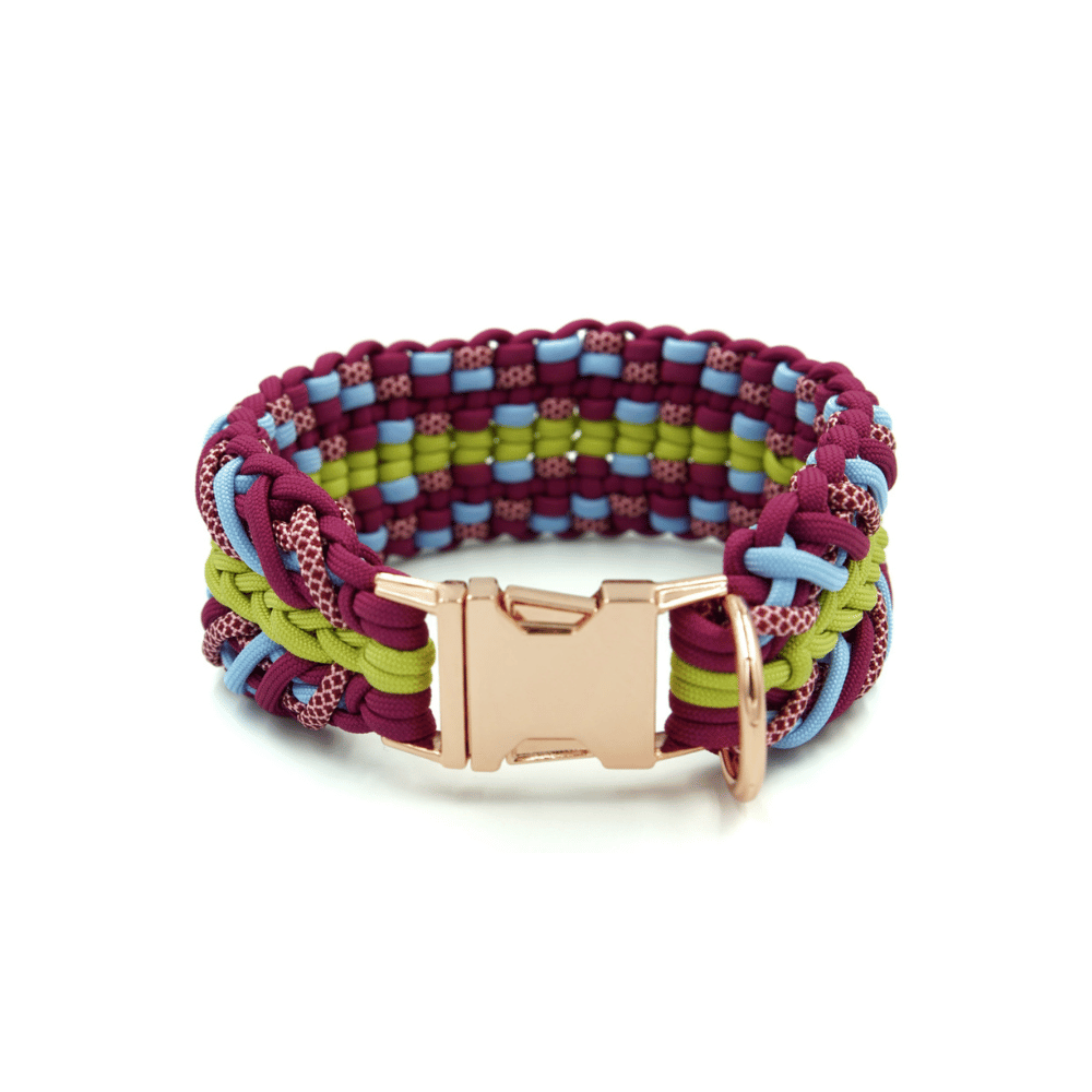 Ręcznie pleciona obroża z Paracordu o szerokości ~6 cm. Będzie się pięknie prezentować na szyjach średnich i dużych psiaków. Starannie wykonany splot sprawia, że obroża jest solidna i trwała. Projektując nasze obroże stawiamy na komfort i wygodę Twojego psa. Designerskie akcesoria mogą być zarówno praktyczne i wytrzymałe. Przykładamy ogromną wagę do każdego detalu, aby zadbać o bezpieczeństwo i styl Twojego czworonoga.